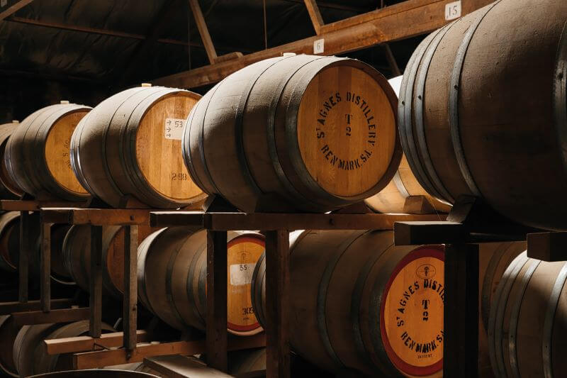 Le chai à barriques de la distillerie St Agnes